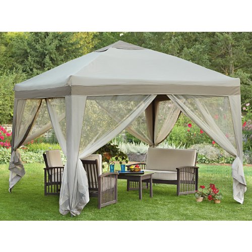 10x10' Portable Patio Gazebo brings instant shelter to any outdoor space! Stylish coverage, quality made for years of outdoors enjoyment! Need a little backyard shelter? Check out this great Portable Patio Gazebo! It's portable, quick and easy to set up. There's room enough underneath for a patio-style table and chairs, too. A perfect pavilion: Fast, simple setup with push-button canopy lock; All-around zip-closure netting; Perfect for backyard barbecues, beach get-togethers, tailgating and more; Includes carrying bag. 10 x 10' footprint. No head bumping, it stands 11' high at the center. 42 lbs. Order now and start building warm-weather memories! 10x10' Portable Patio Gazebo